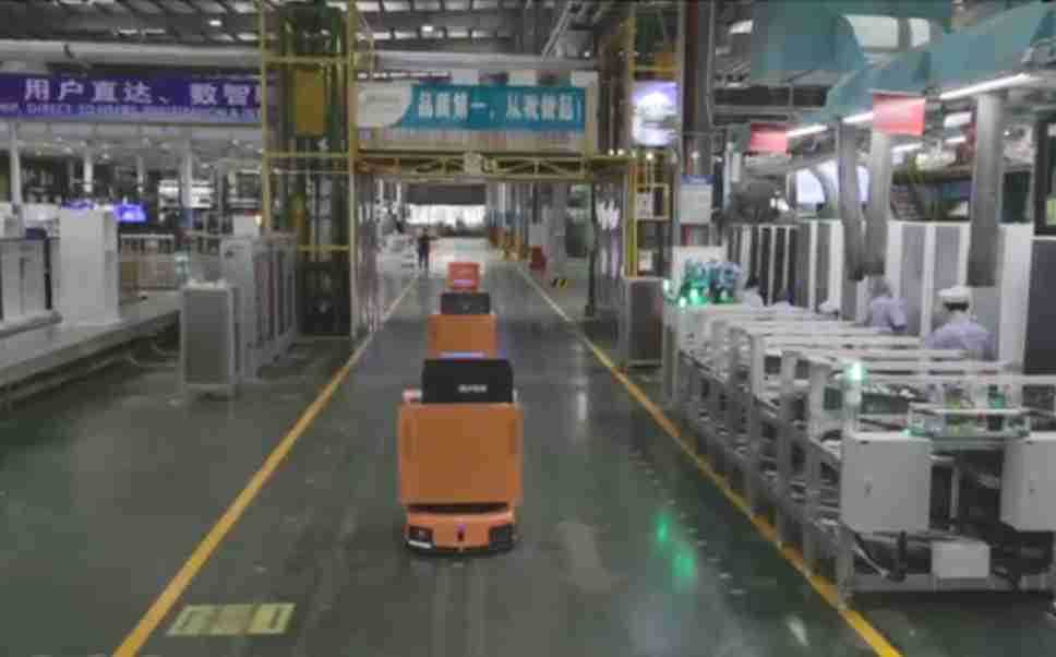 为车载冰箱物流配送打造的智能解决方案,,包含产中物流通过潜伏举升AMR搬运至线边,,,产后成品物流智能仓储,,流程包含产中物流智能齐套入库,,,线边安灯叫料AMR智能配送至线边,,,,成品入库、、、、出库,,,通过无人堆高车机器人,,智能仓储管理替代人工作业管理,,,,实现更高存储、、、更高效率、、、、更具柔性化的解决方案。。。