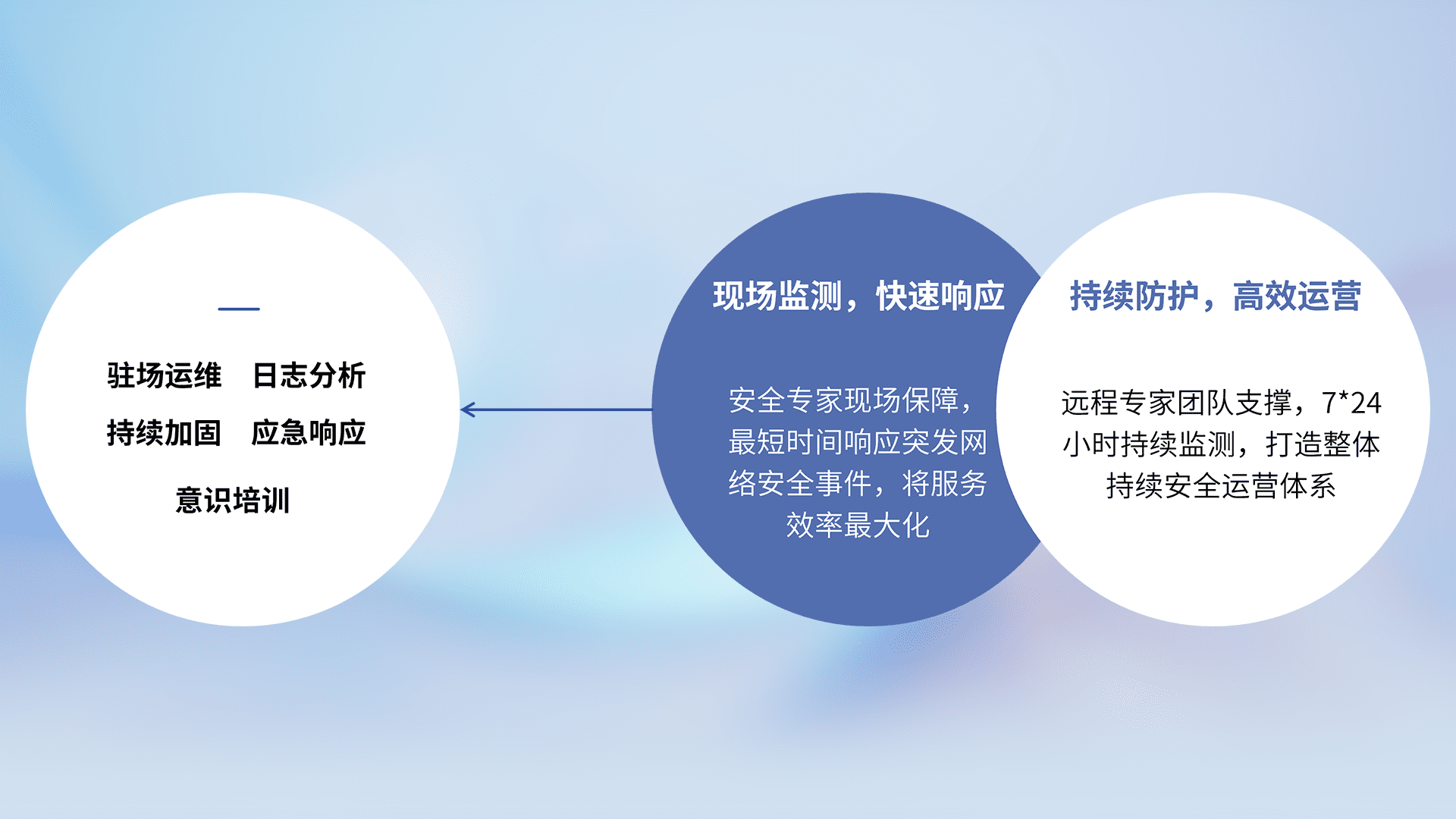 针对客户行业特性,,提供专属的一站式安全管理服务,,,,帮助客户全面感知网络空间威胁,,,,通过安全专家的线上、、、线下防护支持,,实现风险闭环,,,,将安全保障常态化,,为客户打造常态化安全运维运营服务。。。